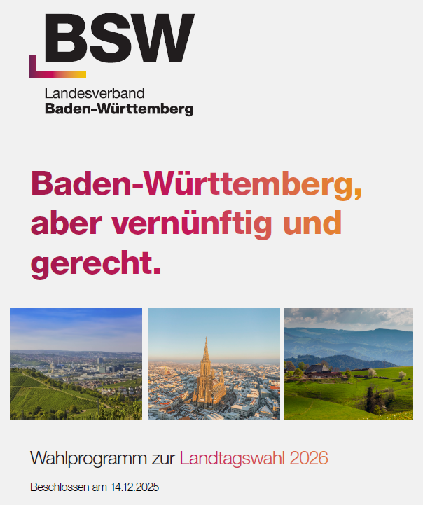 Das BSW stellt sich diesen Herausforderungen. Wir treten konsequent ein für die Stärkung des Wirtschaftsstandorts in unserer Region durch günstige Energie, Bürokratieabbau, Technologieoffenheit und haben hierbei ein besonderes Augenmerk auf den Mittelstand und das Handwerk. Wir setzen uns für sichere und gut bezahlte Arbeitsplätze, ein Ende des Lehrermangels, bezahlbare Wohnungen und Meinungsfreiheit statt Cancel Culture ein. Zur Wehrpflicht sagen wir ganz klar: Nein!